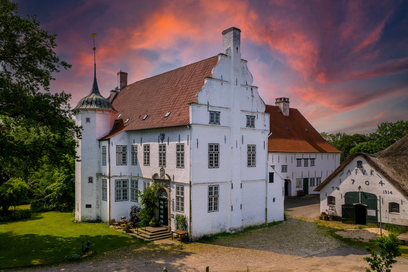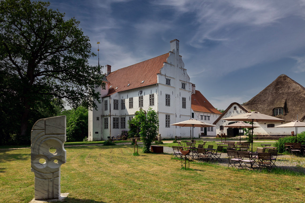 In dem nebenstehenden reetgedeckten Haubarg bietet Hermann Bothe mit seinem Team eine regionale Küche mit französischem Einschlag an.