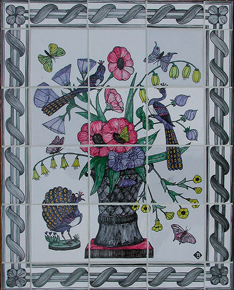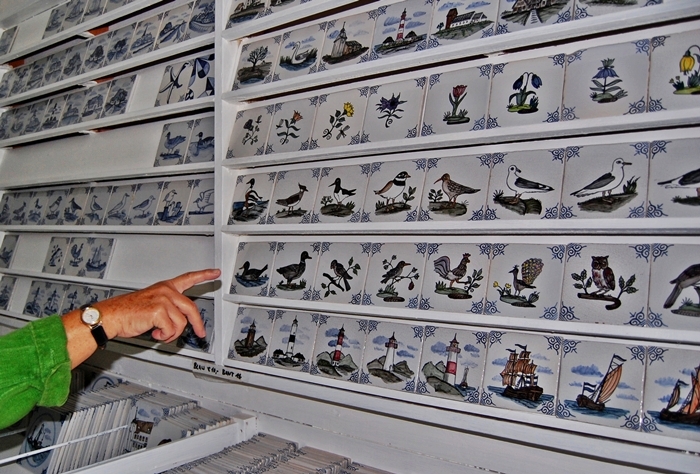 Alfred Jordy stellt bemalte Wandfliesen in Fayence-Qualität nach alter holländischer Tradition her, die dann in der Vorhalle ausgestellt werden. Die Bemalung folgt dem Stil der traditionellen Muster. Die Motivauswahl wird vor allem durch die umliegende Landschaft geprägt,